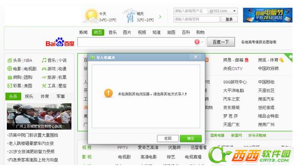 由于我们要切换浏览器,所以,首先我们必然会先选择,登陆账号后,用其他浏览器导入的方式,来导入收藏夹。但是,小编尝试试了很多次,依然无法从搜狗浏览器,将自己的网络收藏夹里的东西,导入到360浏览器,提示我未检测到其它浏览器。