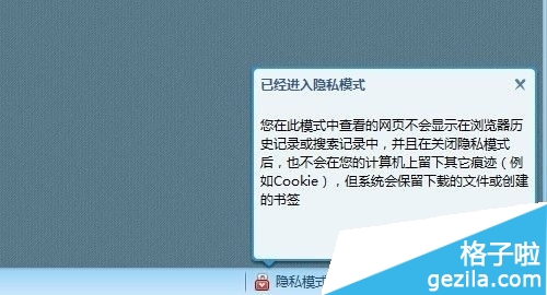 3、隐私模式:该模式不会记录任何的浏览痕迹(下载的文件和收藏夹书签除外)。