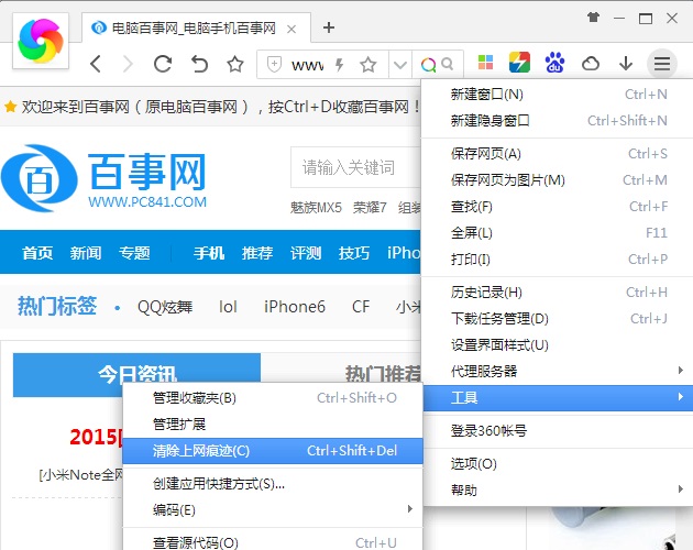 一.打开360极速浏览器,然后点击右上角的菜单图标,在弹出的菜单中,点击展开“工具”菜单,如下图所示。