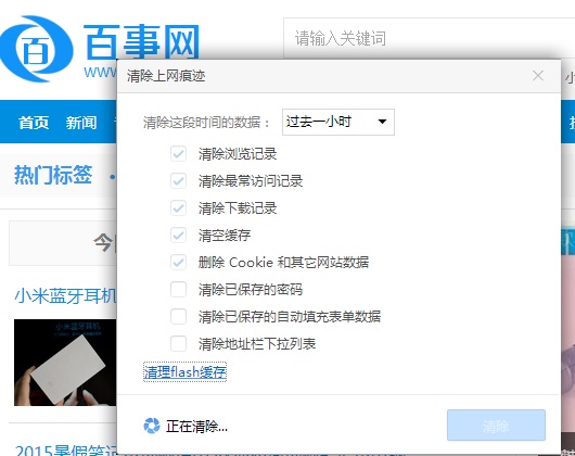 三.在弹出的清除上网痕迹操作框中,就可以看到清除缓存选项,将它勾选上,然后点击下方的“清除”就可以了,如下图所示。
