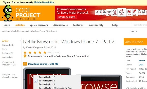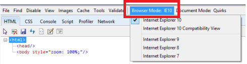 按一下 浏览器模式 IE10.也可以查看所有先前版本的 Internet Explorer,例如 IE9、 IE8 和 IE7。