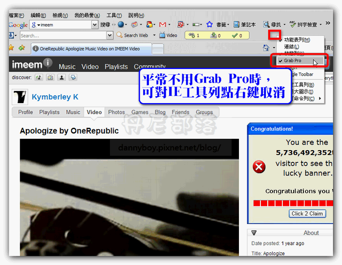 平时没用到这功能时,也可将工具列隐藏,保持IE浏览器的美观。