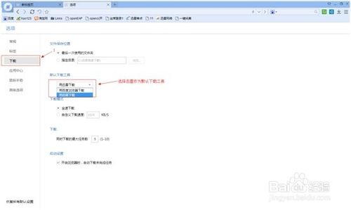 9、在下载栏把默认下载工具设置为迅雷-关闭选项设置页。