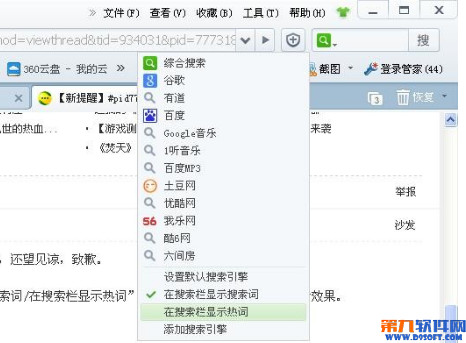 请参照截图所示,勾除掉“在搜索栏显示搜索词/在搜索栏显示热词”/今日热搜“不再自动显示”设置选项,然后重启浏览器查看效果。