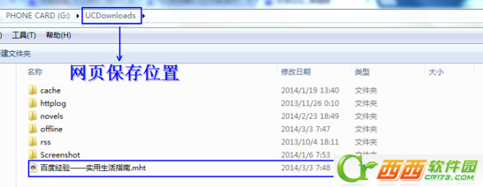 6、在SD卡的根目录下,找到UCDownloads文件夹,保存的网页格式.mht文件就在这个文件夹里,用电脑或者手机浏览器均可以打开。