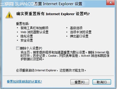 Step 3 - 提示确认,如果你想要一个更加干净的IE,可以勾选删除个人设置;