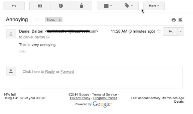 11、Gmail里某联系人纠缠不休,可以点击more(更多操作)下拉的mute(忽略)将该邮件对话屏蔽