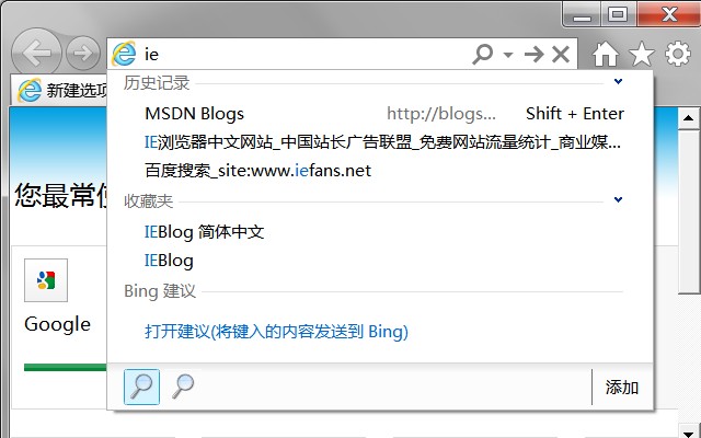 默认的IE地址栏下拉框: