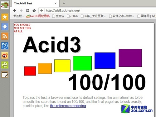 点评:从测试的结果来看,目前的主流浏览器在ACID3基准测试在得分上已经几乎是满分的情况了,这些都是浏览器核心技术的发展所致,浏览器技术已然今非昔比。