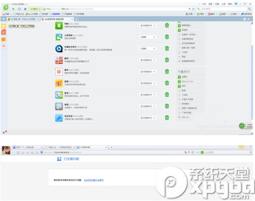 这两款浏览器都支持第三方的扩展支持,360安全浏览器会在安装时安装常用的几个浏览器插件,而360极速浏览器安装时不会添加第三方插件。如果需要使用第三方插件随时可以到扩展中心安装。