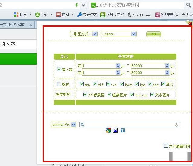 5、在打开的取图页面,下面图片地址栏框输入现在图片网页地址,如图所示,单击“Go”按钮,就出现了图片下载页面。单击“存图”按钮。