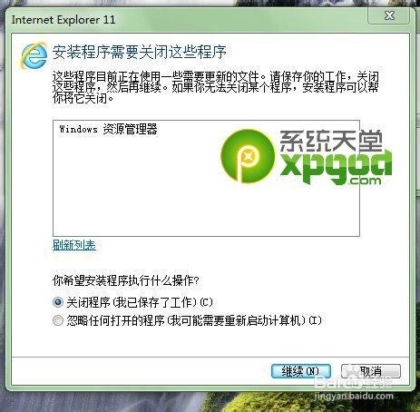 3、IE安装过程中,也要结束下资源管理器,记得提前保存个人文档
