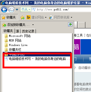第1步:在“IE浏览器”窗口,单击“收藏夹”按钮,然后在左侧的任务窗格中单击“添加到收藏夹”右侧的下三角按钮,从弹出的列表框中选择“添加到收藏夹栏”选项。