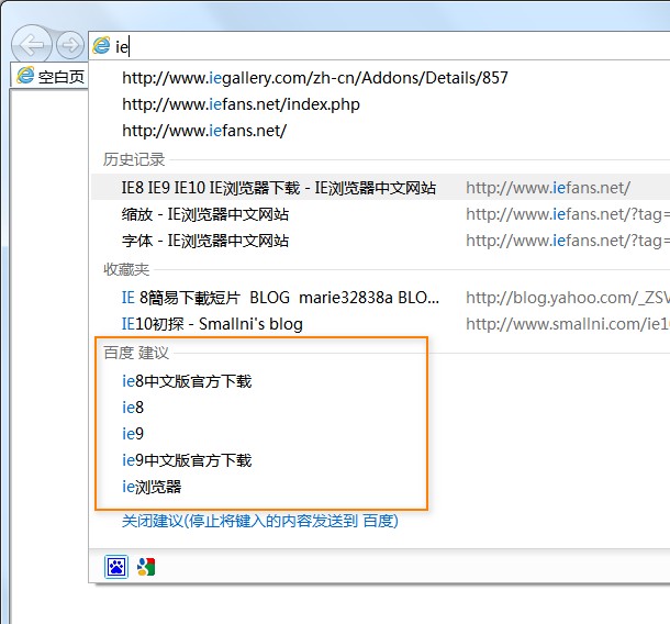 6、全部弄好后,以后当我们在 IE网址栏输入网址、名称或关键字时,下拉选单中会自动出现一些你可能会用得到的、自动出现的关键字,点一下关键字即可马上搜索你要的相关资讯。