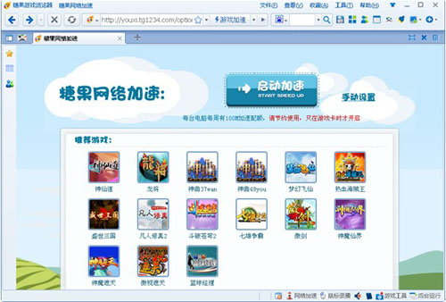 糖果游戏浏览器的云加速功能,就是用来解决网页游戏被卡问题的:启动糖果云加速功能后,游戏加载进度条顺畅多了。