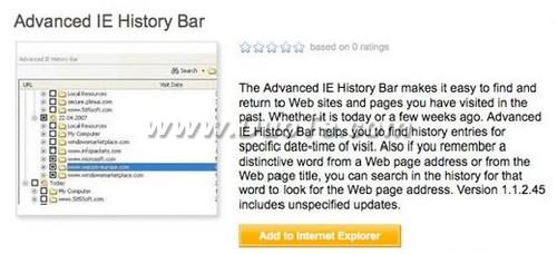 这款插件可以让IE9左侧窗口显示用户的网站浏览历史。用户把浏览历史按链接,标题,访问日期和阅读时间进行归类。插件还提供一个搜索框,以方便用户搜索特定的页面链接。