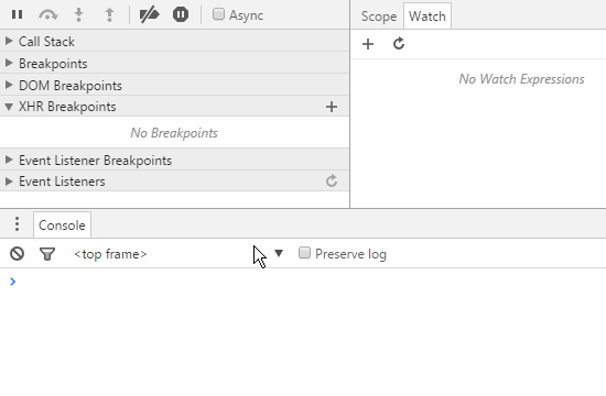 XHR断点的强大之处是可以自定义断点规则,这就意味着我们可以针对某一批、某一个,乃至所有异步请求进行断点设置,非常强大。但是,似乎这个功能在日常开发中用得并不多,至少我用得不多。想想原因大概有两点:其一,这类型的断点调试需求在日常业务中本身涉及不多;其二,现阶段的前端开发大多基于JS框架进行,最基本的jQuery也已经对Ajax进行了良好封装,极少有人自己封装Ajax方法,而项目为了减少代码体积,通常选择压缩后的代码库,使得XHR断点跟踪相对不那么容易了。
