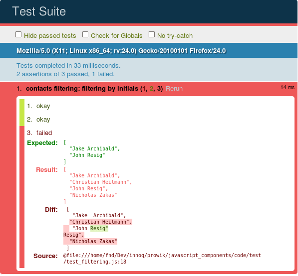 QUnit.asyncTest("filtering by initials", 3, function() { // expect 3 assertions