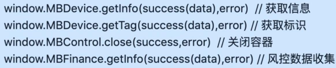由于app端协议及分包问题, 存在多个bridge, 比如mbdevice、mbcontrol、mbfinance,上面列出来的只是一小部分,对于web来说记忆这些接口是一件很费事的事;还有就是以前我调app的jsbridge, 总有下面这样的代码: