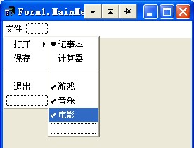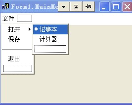 在设计菜单项目中选择RadioItem属性为False,Checked属性为True