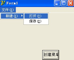procedure TForm1.Button1Click(Sender: TObject); var MainMenu: TMainMenu; MenuItem: TMenuItem; begin //主菜单创建 MainMenu:=TMainMenu.Create(self); Self.Menu:=MainMenu; //文件菜单创建 MenuItem:= TMenuItem.Create(MainMenu); MenuItem.Caption:='文件'; MainMenu.Items.Add(MenuItem); //新建子菜单创建 MenuItem:=TMenuItem.Create(MainMenu); MenuItem.Caption:='新建'; MainMenu.Items[0].Add(MenuItem); //子菜单中的子菜单创建 MenuItem:= TMenuItem.Create(MainMenu); MenuItem.Caption:='打开'; MainMenu.Items[0].Items[0].Add(MenuItem); MenuItem:= TMenuItem.Create(MainMenu); MenuItem.Caption:='保存'; MainMenu.Items[0].Items[0].Add(MenuItem); end; end.
