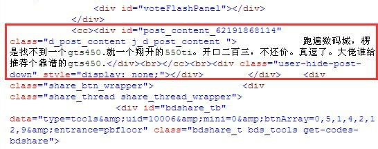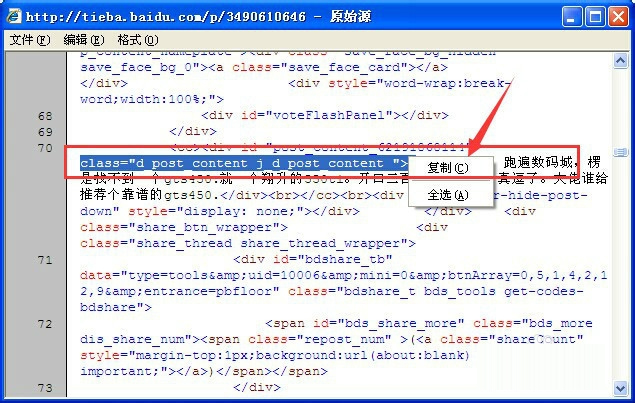 2、比如我们来取百度某贴吧一个帖子内的内容!如下图中的“跑遍数码城,XXXXX”。