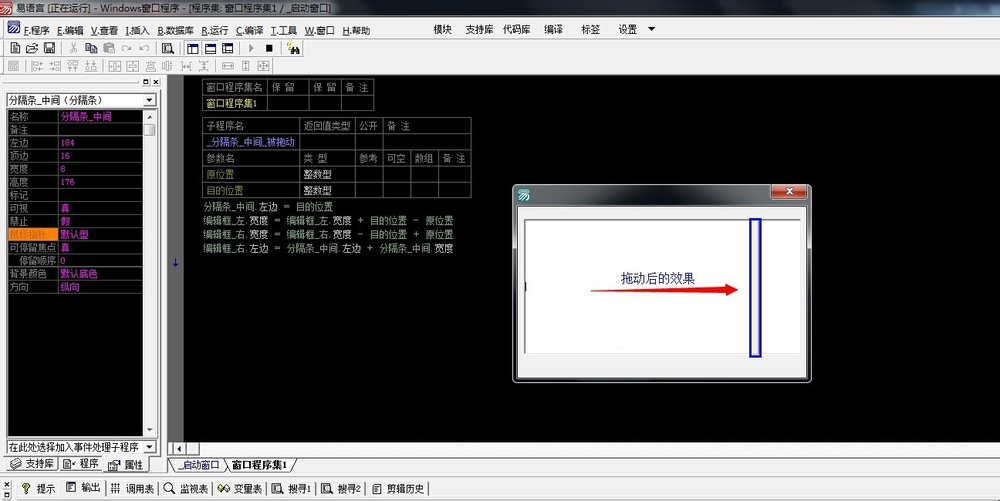 5、代码编写完毕,进入测试程序阶段。按下键盘的F5键,运行程序。然后,鼠标拖动分隔条,查看编辑框的变化。如图: