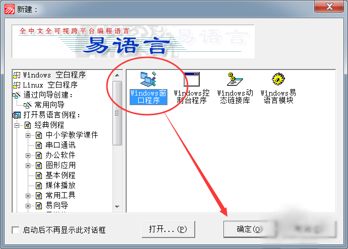 1、启动易语言,新建“Windows窗口程序”。