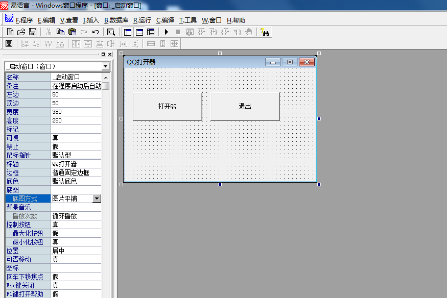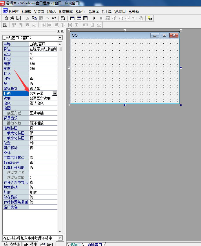 1、首先我们先新建一个windows窗口程序,修改窗口标题为QQ打开器,如图所示