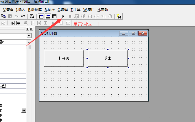 2、之后我们再新建两个按钮,命名为“打开QQ”“退出”,如图所示。