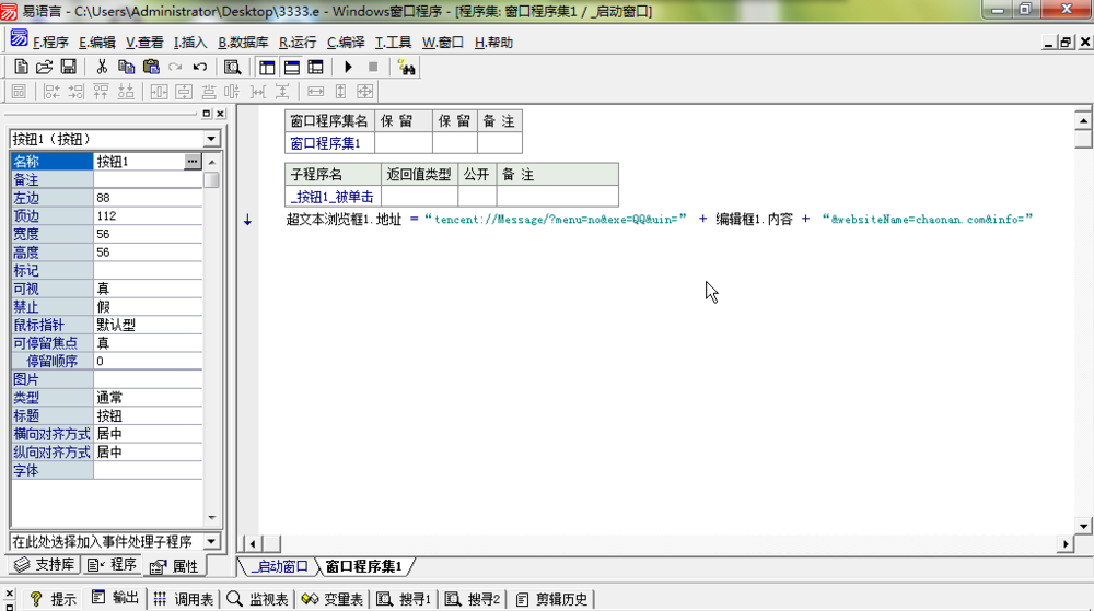“tencent://Message/?menu=no&exe=QQ&uin=” + 编辑框1.内容 + “&websiteName=chaonan.