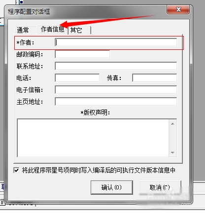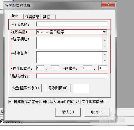填上你的程序名称,程序描述,程序备注,版本号,然后点击作者,输入作者名字或者昵称,防止别人盗用,当然如果不需要这些,只是做来自己用的话也可以直接跳过第二第三步
