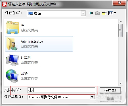 选择你要保存的路径以及输入软件的名称,点击保存即可生成exe可执行文件