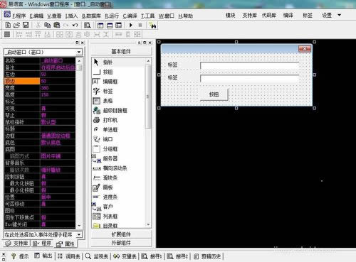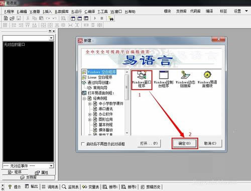 依旧是运行易语言程序,新建Windows窗口程序,点击确定进入开发环境。如图: