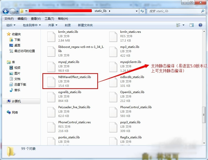 2、将准备好的“水波特效支持库”文件,拷贝到易语言安装目录下的指定文件夹内,笔者就以“静态版”的支持库做演示吧!