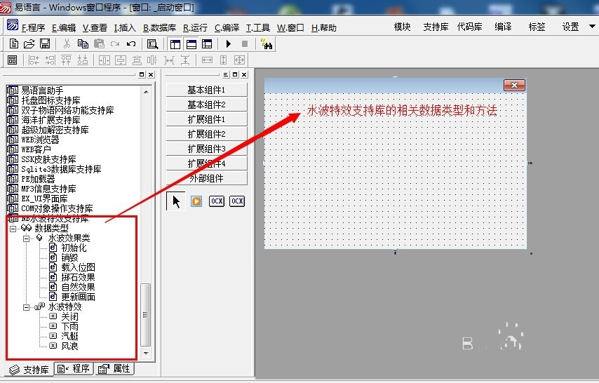 5、展开“NB水波特效支持库“查看数据类型,对支持库的相关数据类型和方法做简要了解。如图: