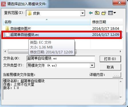 3、导入“超简单自绘模块.ec”