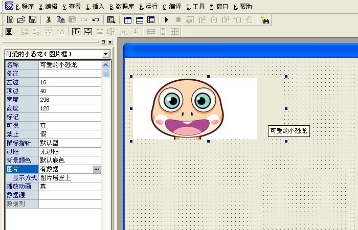 7、调整好图框内图片大小后,鼠标左键单击菜单栏下的运行按钮,这样就可以在运行状态下,查看窗口界面的情况了,如下图所示。一个只有图框控件的窗口程序就做好了。爱好编程和开发的朋友也来做做吧。