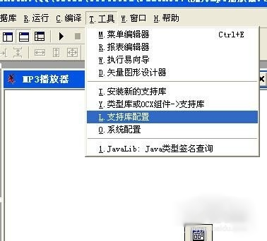 6、在菜单栏选择工具,在下来菜单里选择“支持库配置