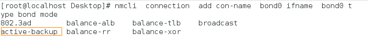eg: 按两下tab出现下面这么多种 mode 供我们参考选择,我们选择 主备模式active-backup