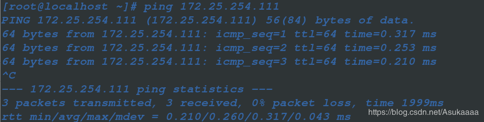 因为bond0已经设置了IP地址172.25.254.111,我们真机的IP为172.25.254.148 在同一网段所以试着PING一下: