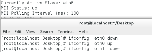 执行后:(可以看到eth1及时的由备用网卡 变为了 主网卡来继续工作保证网络不出现问题!)