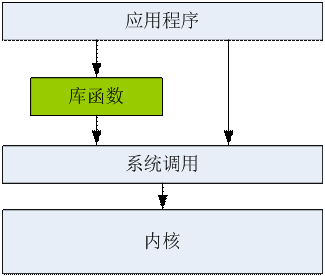 作为UNIX操作系统的一种,Linux的操作系统提供了一系列的接口,这些接口被称为系统调用(System Call)。在UNIX的理念中,系统调用“提供的是机制,而不是策略“。C语言的库函数通过调用系统调用来实现,库函数对上层提供了C语言库文件的接口。在应用程序层,通过调用C语言库函数和系统调用来实现功能。一般来说,应用程序大多使用C语言库函数实现其功能,较少使用系统调用。