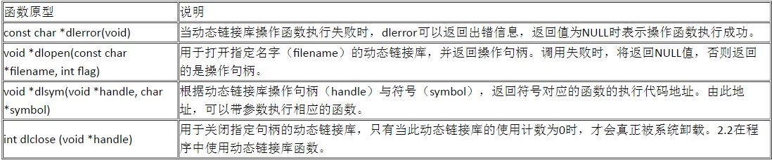 动态加载是非常灵活的,它依赖于一套Linux提供的标准API来完成。在源程序里,你可以很自如的运用API来加载、使用、释放so库资源。以下函数在代码中使用需要包含头文件:dlfcn.h