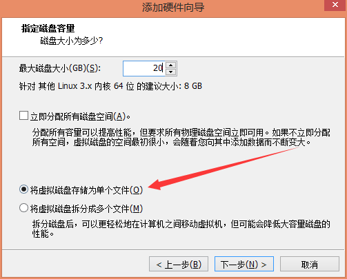 如果在vmvare上做此实验,在新建虚拟机创建新磁盘的时候,一定要选“Store virtual disk as a single file”,否则,也会出现内核恐慌kennel panic。
