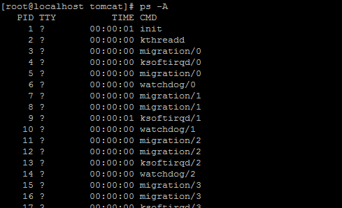 例:查看系统中的每个进程。 命令:ps -A
