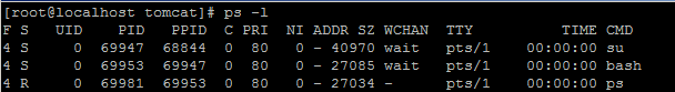 例:将目前属于您自己这次登入的 PID 与相关信息列示出来。 命令:ps -l