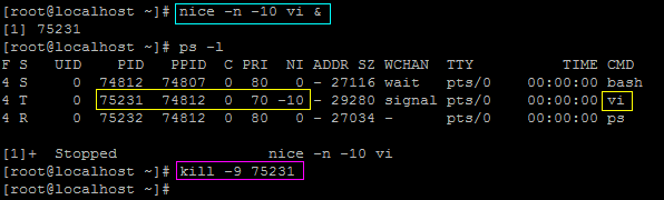 nice命令调整程序运行的优先级。 nice [-n 数字] command 例:启动vi程序,同时提升其优先级。