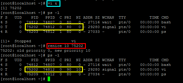 renice命令对已存在进程的nice重新调整。 基本格式:reniece [number] PID 例:重设vi程序的vi值。