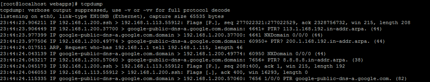 说明: tcpdump截取包默认显示数据包的头部。 基础格式:时间 数据包类型 源IP 端口/协议 > 目标IP 端口/协议 协议详细信息